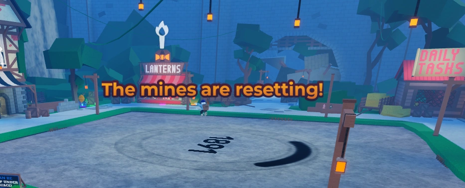 The Mine Collapse is an event that happens aroun [time here]. The time before the mines collapsing will be loosely indicated by the Mine Conditions shown at the top of the screen (See Gallery). There are four total stages after the mines reset, each being shorter than the last. Right after the mines restart, the Mine Conditions will appear as Safe, followed by Risky, and then Dangerous. Finally, the Mines will reach Critical conditions, where the mines will then shortly, after a 30 second warning, reset and force all players out of the mines. All caves or dug out spaces will be deleted.